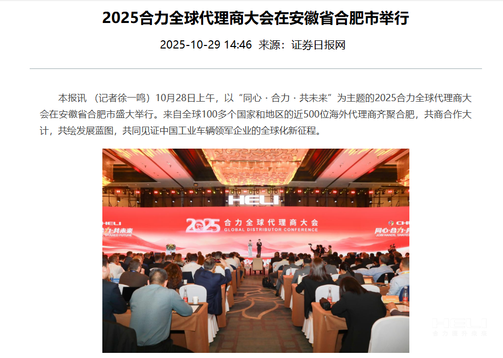 證券日?qǐng)?bào)網(wǎng)丨2025合力全球代理商大會(huì)在安徽省合肥市舉行