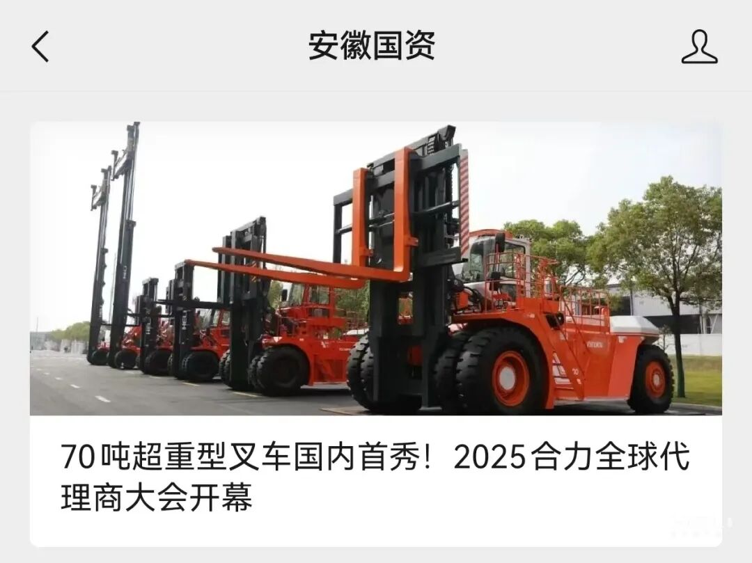 安徽國(guó)資丨70噸超重型叉車國(guó)內(nèi)首秀!2025合力全球代理商大會(huì)開(kāi)幕