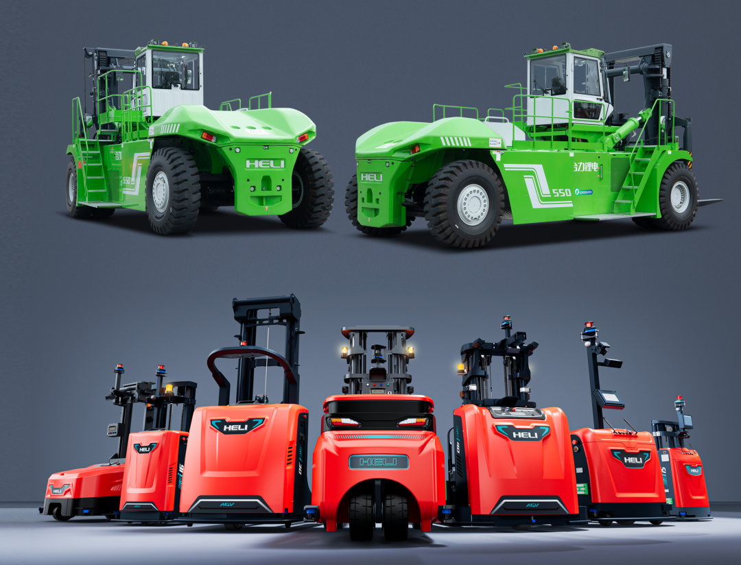合力55噸鋰電叉車和合力i系列智能工業車輛產品。受訪者供圖