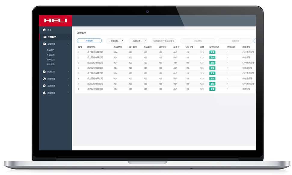 車輛故障狀態及顆粒物排放濃度監控、故障代碼顯示。保障車輛運行安全。為車輛維保提供指導依據。